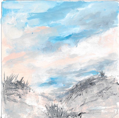 Ek het vir myself 'n uitdaging gestel. Verf elke dag ‘n landskap vir 100 dae. Nadat ek meer ure begin werk het, kon ek nie myself indink dat ek nie elke dag kon verf nie. Kuns hoef nie altyd 'n meesterstuk te wees of in alle opsigte perfek te wees nie. Wanneer ek spontaan verf en vinnige besluite neem, is my kuns meer dinamies en het dit 'n gevoel van beweging. My bedoeling was om 'n beperkte palet te gebruik, vinnige besluite te neem oor tekstuur en komposisie en... om elke dag te verf! Die feit dat ek 'n gewone sketsboek gebruik het, het baie gehelp, aangesien die papier kwaliteit nie te veel verf en ‘oorwerk’ kon vat nie. Elke skildery is 14x14cm en is tussen 5-10 minute elk gedoen. Ek het so baie oor my en my kuns met hierdie uitdaging geleer: komposisies beplan, hoe om tekstuur te skep en my palet te beperk, my eie kleure te meng, die tipe landskappe wat my die meeste aanspreek en dat daar meer tyd in 'n dag as wat ek soms dink. Elke een is Suid-Afrikaanse, Wes-Kaapse landskappe, van die honderde foto's wat ek geneem het terwyl ek daar gekuier het of 'n mengsel van foto's en herinneringe. Sommige is deur ander mense geinspireer. Dag 13-fotokrediet: Iza Slabbert Dag 47 fotokrediet: Magda Lottering