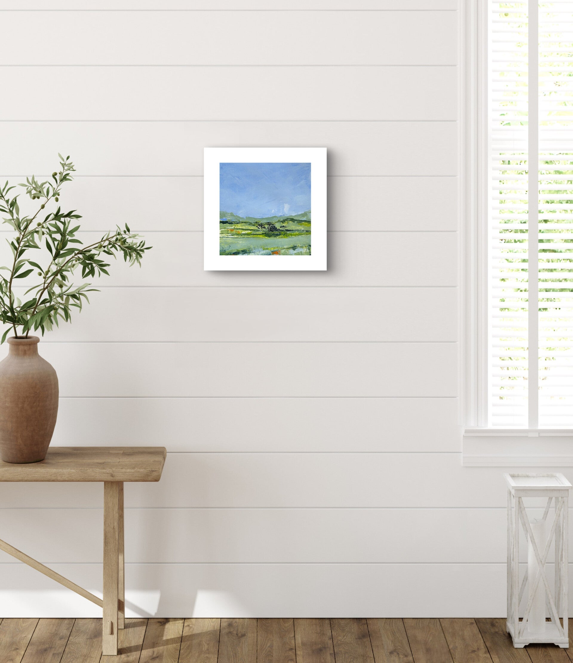 The artwork itself is 20x20cm and is mounted to fit a 40x40cm frame.
