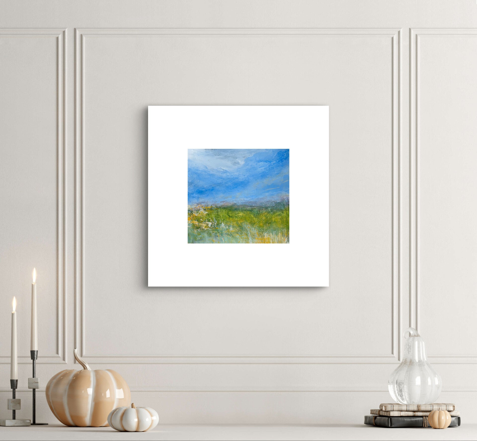 The artwork itself is 20x20cm and is mounted to fit a 40x40cm frame.