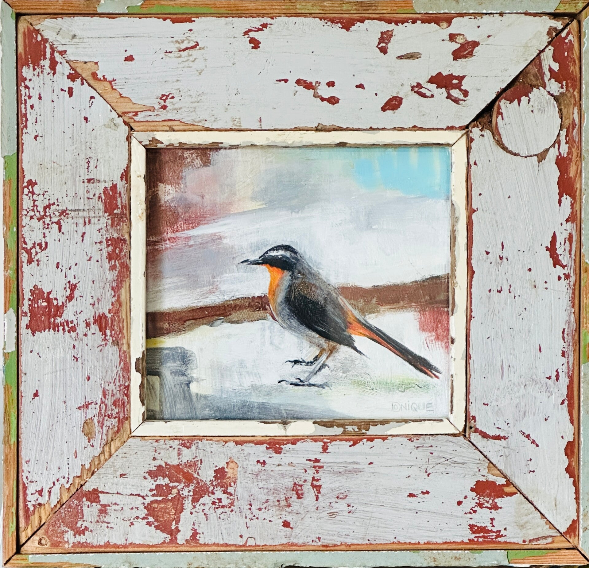 While visiting my uncle on his new naartjie (tangerine) farm, we sat on the terrace enjoying very creamy carrot cake. A little Cape robin came by to say hallo. I wanted to capture the memory. The frame is made by In Tandem Decor manufactured in Roberton, Western Cape, South Africa. I always buy these frames and capture little memories in them.